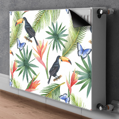 Cache radiateur déco Toucans sur une branche a un aimant à l'intérieur, vous pouvez donc facilement le fixer au radiateur. Sur le côté extérieur visible, il y a un motif sélectionné réalisé à l'aide d'une méthode d'impression moderne.