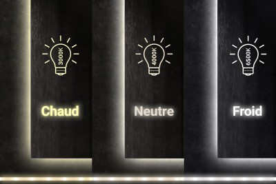 Couleurs de lumière disponibles: Chaud (3000K) / Neutre (4000K) / Froid (6500K)