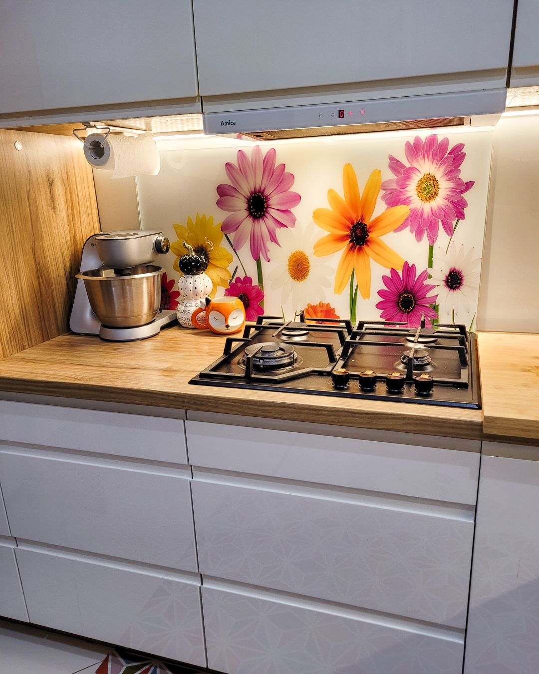 Lorsque nous décorons une cuisine, nous pensons souvent à la décoration à la toute fin. Cependant, Fleurs floral multicolore peut être considéré dès la phase de planification de l'ensemble, car elle compose avec le mobilier et constitue une barrière défensive très bonne contre la saleté typique de cuisine pour nos murs. Fleurs floral multicolore sont multicolores, modernes décoration murale faite de matériaux de qualité haute. Vous nettoyez plus facilement que les joints entre les carreaux et créez un effet visuel merveilleux et extraordinaire. Mettre l'accent sur moderne la décoration de la cuisine revêtue de Fleurs floral multicolore.