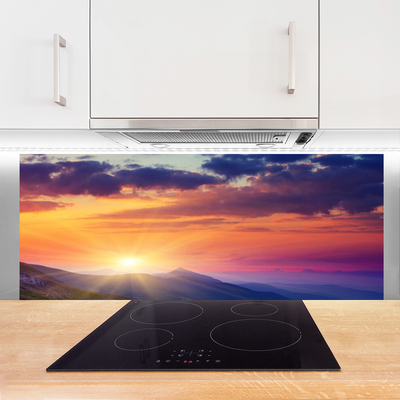 - Panneaux de cuisine en verre Montagne soleil paysage multicolore