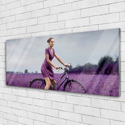 - Tableaux sur verre Femme vélo prairie personnes rose